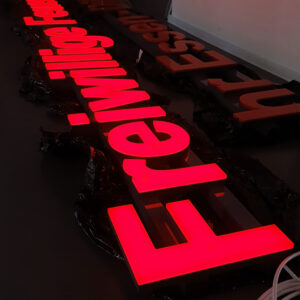 Unsere 3D-Leuchtbuchstaben aus Acrylglas sind nicht nur ein Blickfang, sondern auch eine Investition in eine beeindruckende visuelle Präsentation. Ihre dreidimensionale Struktur verleiht Ihrem Logo oder Schriftzug eine herausragende Tiefe und Dimensionalität, die Aufmerksamkeit erregt und Eindruck hinterlässt.