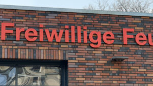 Für die Feuerwehr Essen, sollten es rote LED Einzelbuchstaben sein. Als Träger kam eine Unterkonstruktion aus Aluminium, nach RAL lackiert, zum tragen. Die Werbeanlage wurde im Betrieb vormontiert und vorverkabelt. Es wurde rotes Acryglas aus einem 30mm Block gefräst und mit roten LED bestückt.