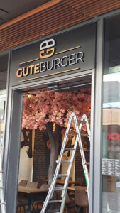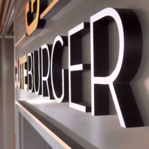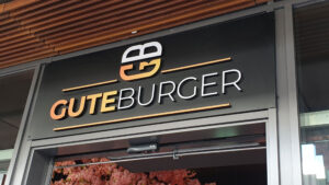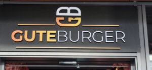 Hier durften wir für „Gute Burger“ eine eindrucksvolle 3D Buchstaben Werbeanlage konzipieren. Leistungsstark, auffällig, exklusiv und in 3D. Montiert auf eine zur Fassade passenden Trägerplatte, fügt sich die Werbeanlage nahtlos in die Architektur. Die Buchstaben sind zusätzlich farbig im Ci Foliert.