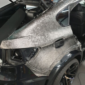 Dieser Power SUV bekam von uns die ultimative Folierung in Form einer Hexis Forged Carbon-Folie spendiert. Einmal volle Hütte bitte. Es wurde kein Teil ausgelassen, alle Air-Intakes, Lufthutzen und Spoiler wurden in der einzigartigen Hexis Forged Carbon-Look Folie foliert. Die matte Folie mit den glänzenden Schimmereffekten bei Lichteinstrahlung, passt wie ein zweite Haut auf das Fahrzeug. Böse, schön, einzigartig, so hat der V8 Sound noch nie ausgesehen.