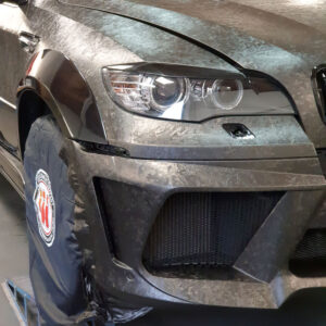 Der BMW X6M Lumma Design in Forged Carbon von Hexis foliert, ist ein leistungsstarkes und visuell beeindruckendes Hochleistungs-SUV. Lumma Design verleiht dem X6M mit einem Body-Kit ein aggressiveres Aussehen und optimierte Leistung. Die Hexis-Folierung in Forged Carbon bietet eine einzigartige, strukturierte Optik und zusätzlich optische Power. Diese Kombination aus Design und Materialien macht das Fahrzeug besonders exklusiv und individuell. Der modifizierte X6M verbindet Luxus und Sportlichkeit auf höchstem Niveau. Selbst Mad Max wäre begeistert.