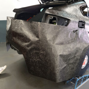 Dachten wir zunächst auch, aber irgendwie ist es uns bestens gelungen. Also die Antwort lautet, nein, nicht schwerer als alle anderen hochwertigen Folierungen von uns. Besonderheiten? Ja, die Oberflächenstruktur, sie ermöglich ansatzloses Verlegen der Folie, obwohl oder gerade weil die sich immer wiederholende Struktur keine direkten Folienansätze erkennen lässt.