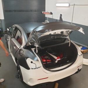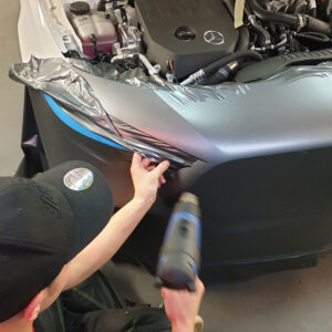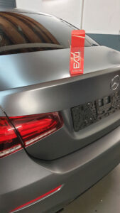 Nach dem Folieren, lassen wir sich diese auf dem Fahrzeug entspannen und einen Tag ruhen. Je nach Bedarf geschieht dies unter Infrarotlicht, welches die Folie erwärmt und so zur Entspannung beiträgt. Die Folie wird nochmal gründlich gereinigt mit einem Surface Cleaner. Danach bei Zimmertemperatur, tragen wir z.B. eine Keramikversiegelung von Gtechniq oder Halo auf. Dieser Prozess erfordert entsprechende Fachkenntnisse. Für Kunden die noch mehr wünschen überziehen wir diese Nanoversiegelung zusätzlich mit einem Exo Coating für maximales Abperlen. Somit ist jede Mattfolie auf höchstem Level geschützt.