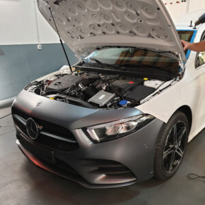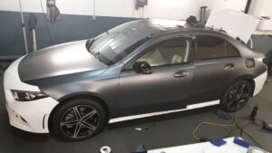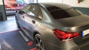 Der Mercedes CLA 250e AMG Mattlook verkörpert eine beeindruckende Symbiose aus sportlicher Eleganz und moderner Effizienz. Mit seiner markanten Mattfolierung zieht er alle Blicke auf sich und setzt ein klares Statement auf der Straße. Das AMG-Design verleiht dem Fahrzeug eine dynamische Ästhetik, die durch präzise Linien und aggressive Akzente unterstrichen wird. Egal ob weißer Lack oder dunkler Lack, wir sind in der Lage auch Ihr Fahrzeug in einen exklusiven Mattlook-Styler zu verwandeln.
