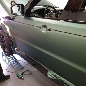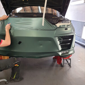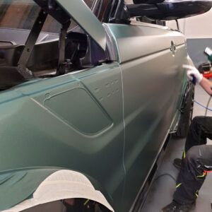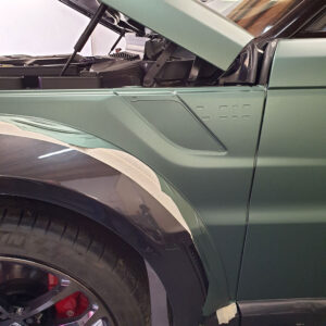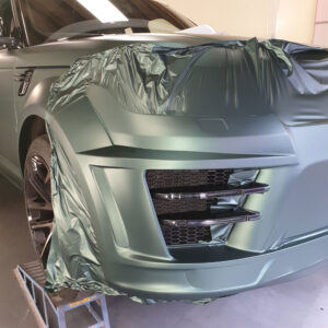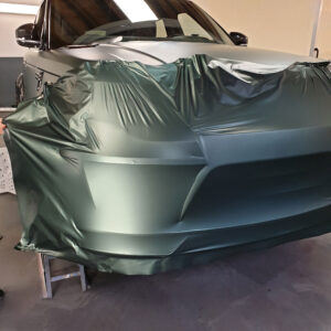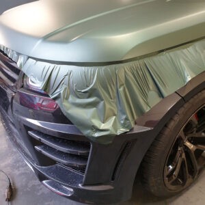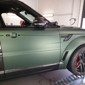 Die spannende Aufgabe, ein royales Gefährt mit einer Folierung vom Pitbull zum königlichen Hochsitz zu verwandeln, gleicht einer königlichen Zeremonie. Der Lumma-Umbau mit seinen breiten Verbreiterungen, Air Intakes und Luftgittern fordert höchste Präzision und Geduld. Jedes Detail muss perfekt umhüllt werden, um die kraftvolle Erscheinung in eine elegante, stilvolle Majestät zu verwandeln. Der Pine Green matt metallic Anstrich verleiht dem V8 eine noble Aura, die britisches Understatement mit sportlicher Stärke vereint. Diese Verwandlung ist nicht nur eine technische Meisterleistung, sondern auch eine Hommage an den feinen britischen Geschmack.