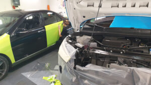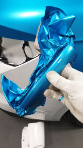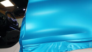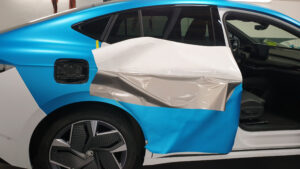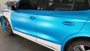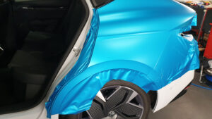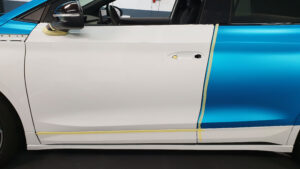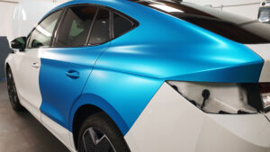 Hier ist Kreativität gefragt. Bei einem starken Kontrast wäre es ggf. sinnvoller den Übergang klar und deutlich zu setzen. Da die Kontraste schon stark polarisieren, sollte der Übergang z.B. durch einen glatten Stoß, also wie ein Schnitt über das Fahrzeug ausfallen. Da wo die beiden Folien aufeinander treffen kann man diesen gerne noch durch einen Kontrast überdecken. Nehmen wir das klassische schwarz und weiß, so kann man den Stoß mit einem roten Folienstreifen überdecken. Bei Harmonischen Farben kann jedoch der Übergang auch künstlerisch gestaltet sein. Er muss nicht gerade erfolgen, sondern z.B. Wellenförmig oder „ausgefranst“ aussehen. Gerne beraten wir euch zu diesem Thema.