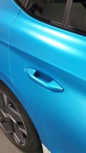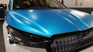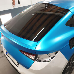 Modernste Elektrotechnologie und ein maßgeschneidertes Folien-WrapDesign, das die Blicke auf sich zieht. Unter der Haube pulsiert die elektrische Kraft eines Hochleistungsantriebs, der Sie mit atemberaubender Beschleunigung und nahezu geräuschlosem Fahrvergnügen begeistern wird. Außen jedoch herrscht absolute Coolness. Wieder haben wir bewiesen, dass nicht nur „form follows function“ zählt, sondern auch Design. Sicher hätte auch Grün der Ökobilanz hier Rechnung getragen, aber dabei den technisch versierten Aspekt nicht wirklich bedient. Daher ist dieses Iceblue, in einem fantastischem matt metallic, genau die Farbe, die hier die inneren wie äußeren Werte potenziert.