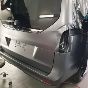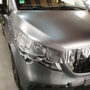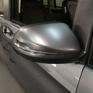 Dieser Look überzeugt auf allen Seiten. Nicht nur das er dem original Mercedes Mattlack nahe kommt, nein er überzeugt zudem durch Schutz des Basislacks, ist einfacher und besser zu pflegen als originaler Mattlack und ist zudem reversibel. Obendrein haben wir dieser Vollfolierung noch eine Nanoversiegelung verpasst. Die so sehr hydrophobe eingestellte Oberfläche läßt Schmutz und Wasser einfach abperlen. Ideal wenn der Camper seinen Dienst auf der Straße oder sogar im leichten Gelände absolviert.