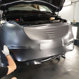 Der typische AMG Look kommt von der matten Lackanmutung des Hauses, welchen wir hier mit Hochleistungsfolie in Holzkohle matt nachempfunden haben. Die Folierung bringt einige Vorteile gegenüber dem Originallack mit sich. Der Größte ist wohl, dass der Look jeder Zeit ohne Rückstände reversibel ist.