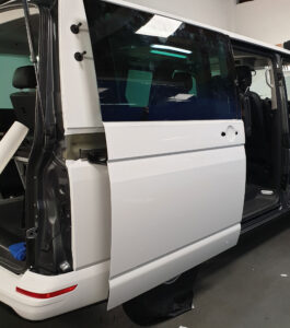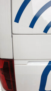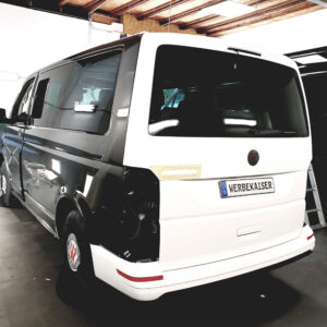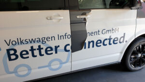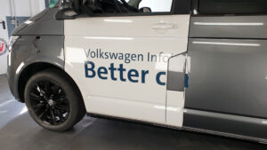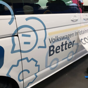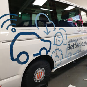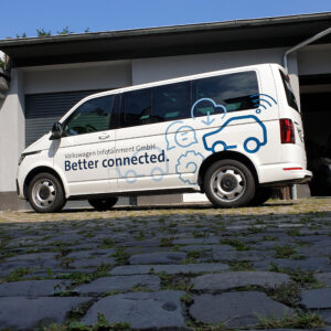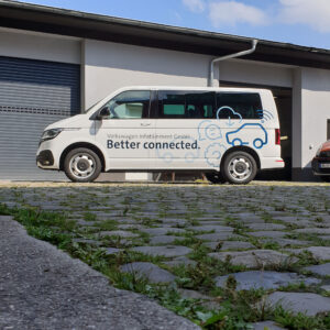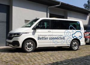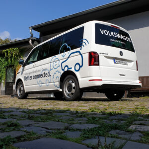 Wenn VW uns den Auftrag gibt, einen Bulli zu folieren, ist es uns eine Ehre, diesem Wunsch nachzukommen und eine Meisterleistung zu liefern. Der schicke VW Bus T6.1 in klassischem anthrazit Metallic erhielt aufgrund des VW Infotainment Corporate Designs ein neues Kleid in strahlendem Weiß. Die Vollfolierung wurde sorgfältig über das gesamte Fahrzeug inklusive des Dachs angebracht. Anschließend wurde das Branding gemäß den Vorgaben entwickelt und umgesetzt. In enger Zusammenarbeit mit VW entstand ein hochwertiges Wrapdesign für eine markante Beschriftung. Diese durfte zwei Jahre lang die Straßen Deutschlands erobern, bevor sie von uns wieder neutralisiert wurde.