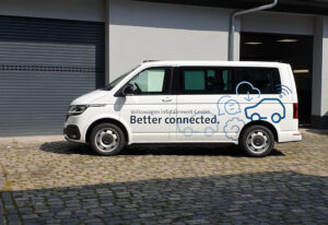 VW T6.1 schon ohne Branding ein Hingucker. Nach der Folierung ein Blickfang mit Mehrwert.