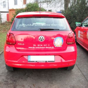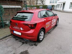 Warnhinweise inklusive. Dieser VW UP soll auffallen. Dazu haben wir ein eigenes Design entworfen und den UP nach CI beschriftet. Auch in der Nacht wird dieser Einsatzwagen deutlich sichtbar, durch umlaufende Reflektorstreifen (nach StVO.) So ist jeder Einsatz ein sichtbar sicherer.