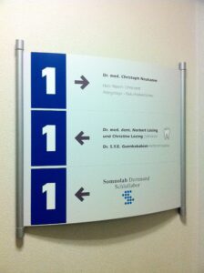 Praxisschilder und Kanzleischilder sind mehr als nur visuelle Kennzeichnungen. Sie sind das Gesicht einer medizinischen Praxis oder einer Kanzlei und vermitteln Vertrauen, Professionalität und Orientierung für Patienten und Mandanten. Durch klare Gestaltung und gut sichtbare Platzierung tragen sie wesentlich dazu bei, dass Menschen den Weg zu den richtigen Orten finden, sich willkommen fühlen und eine positive erste Eindruck gewinnen. In einer Welt voller visueller Reize sind präzise und ansprechende Praxisschilder und Kanzleischilder unverzichtbar für eine erfolgreiche Kommunikation und Interaktion mit Kunden und Patienten.